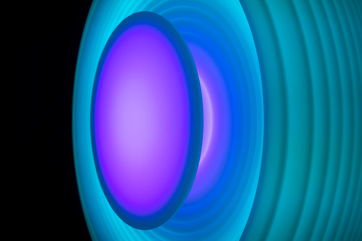 Inspired directly by Aperture, Smith’s first color-shifting work created during his artist residency at the Palm Springs Art Museum in 2010, the Lightworks create unique, intimate experiences in color, form, surface, and change. Formally focused as Torus or Lozenge shapes, each new iteration builds upon the former, expanding Smith’s dialogue on and investigation of color. Set to precisely delineated paces, brightnesses, and colors, Smith sees these works as highly specific three-dimensional canvases that he paints with light and that are durationally experienced.
